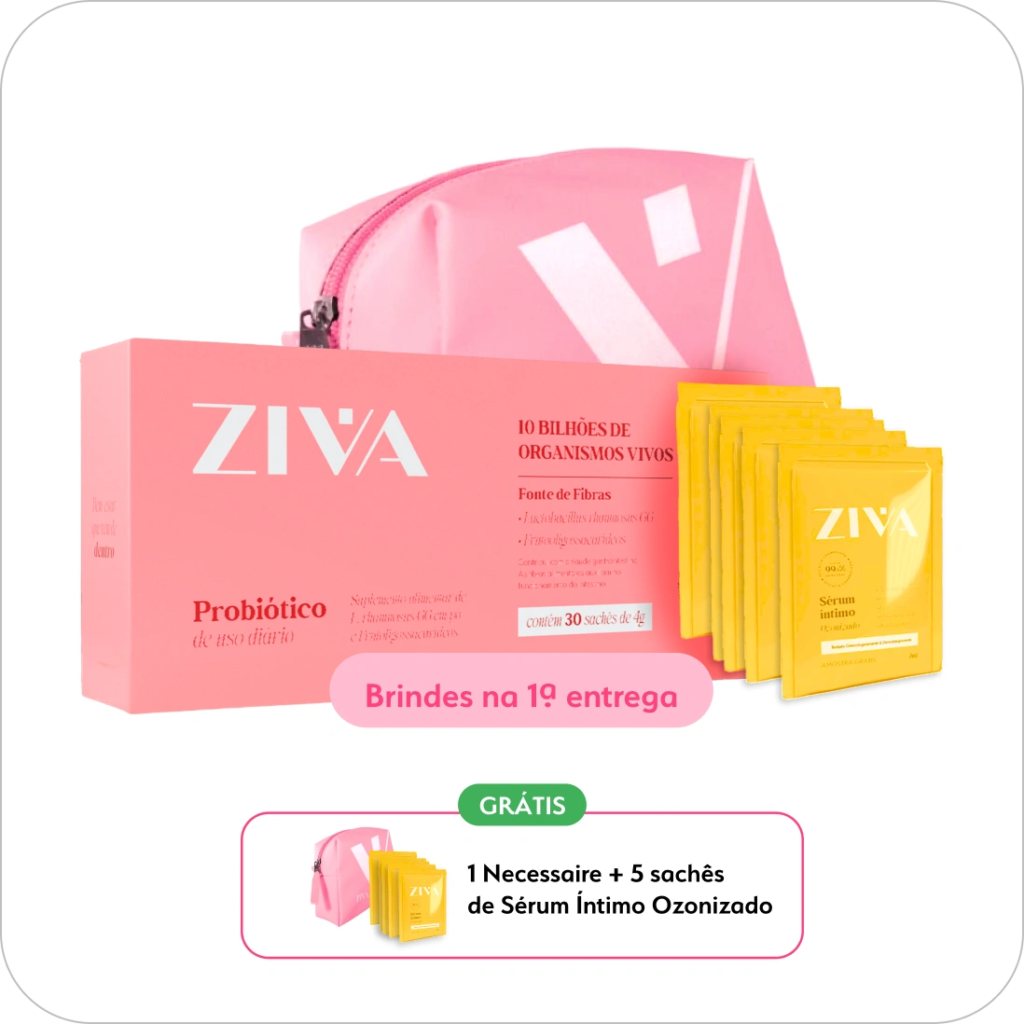 Probióticos são bactérias boas que restauram e equilibram a flora íntima, ajudando a manter o pH saudável e prevenindo infecções recorrentes. Já os prebióticos são fibras que servem de alimento para essas bactérias, potencializando sua ação no organismo. Quando um suplemento combina ambos, como o Simbiótico Íntimo Ziva, ele se torna um simbiótico, garantindo máxima eficácia para sua microbiota vaginal e intestinal.