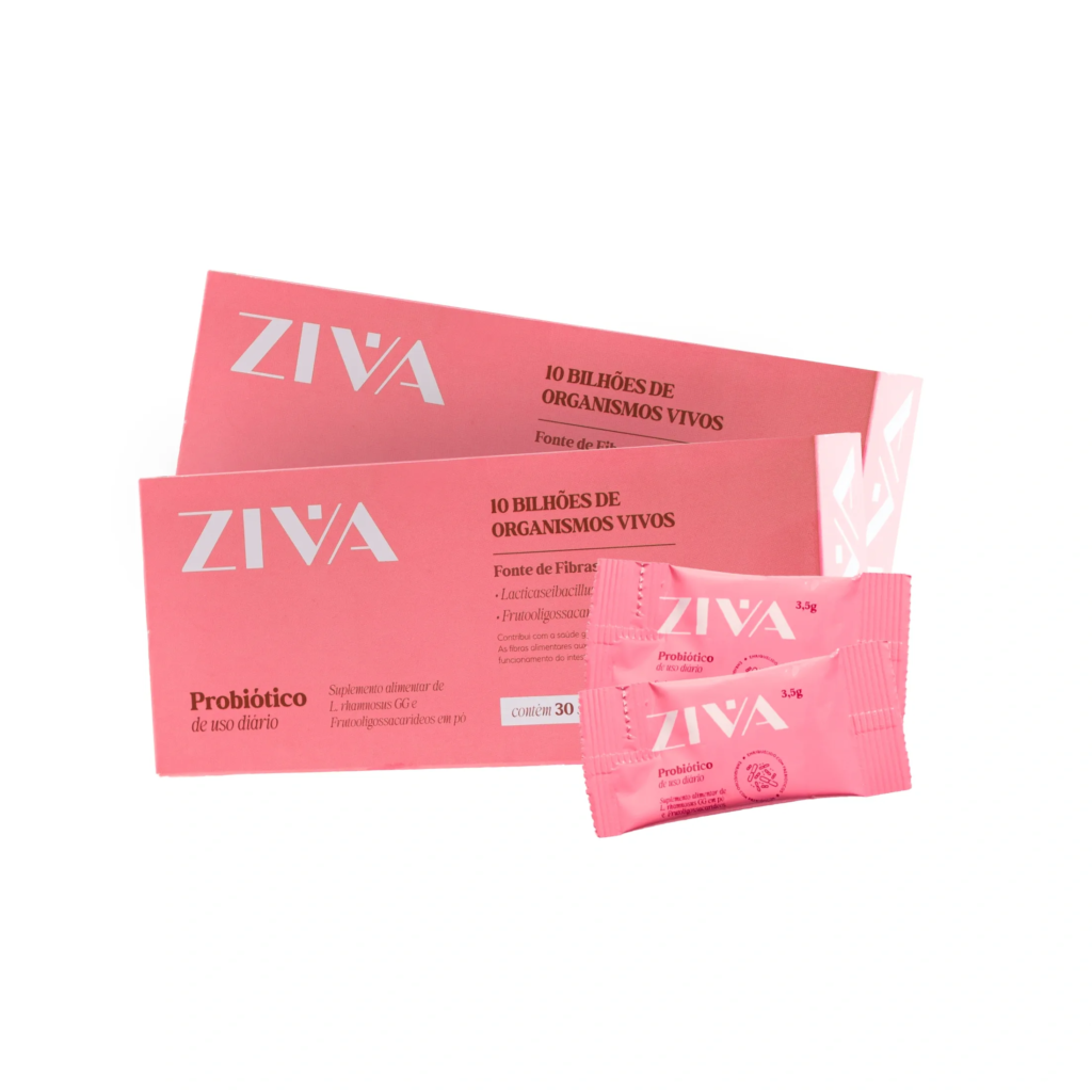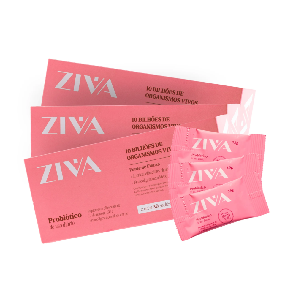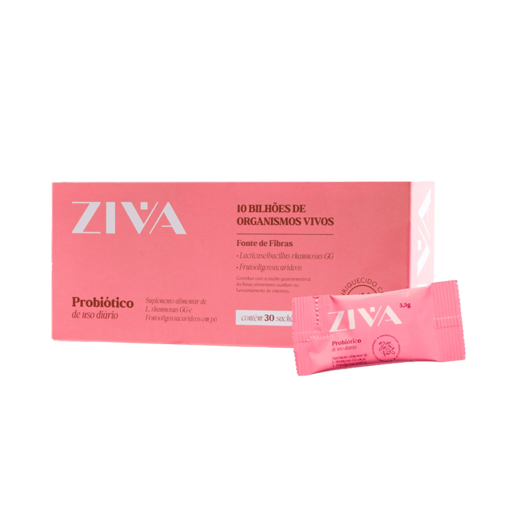 O Ziva é um simbiótico completo, que combina 10 bilhões de Lactobacillus Rhamnosus com o prebiótico FOS para restaurar o equilíbrio da flora íntima e intestinal. Ele ajuda a prevenir infecções vaginais recorrentes, controla odores e corrimento, regula o pH vaginal e fortalece a barreira natural contra bactérias e fungos. Além do cuidado íntimo, o Simbiótico Ziva também auxilia na digestão, reduz o inchaço, melhora a absorção de nutrientes e reforça a imunidade. Se você busca um probiótico completo, eficaz e com sabor agradável, o Simbiótico Íntimo Ziva é pra você!